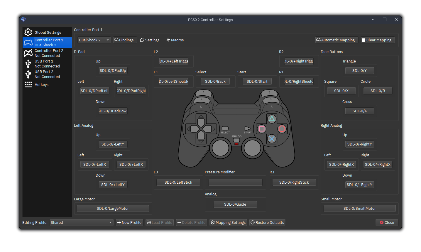 With the introduction of SDL and Qt came the opportunity to add automatic controller mapping. What does this mean? For anyone using SDL or XInput, you're just two button clicks away from mapping your controller. Simply click the button, then select your controller from the list. Done!