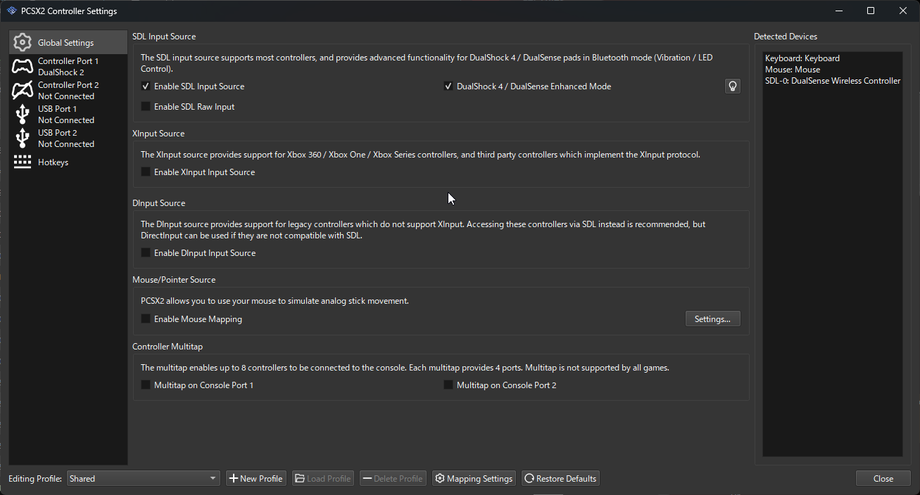 - Enable the SDL Input Source in PCSX2, if it is not already.